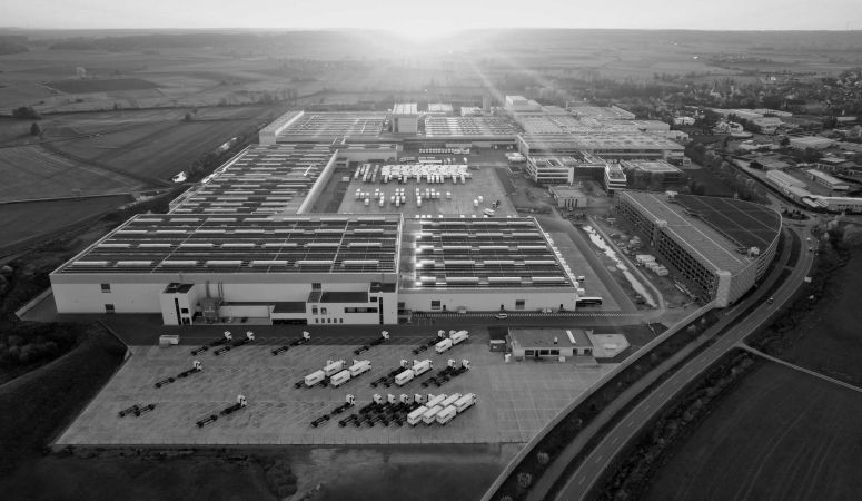 Anstelle des üblichen Fotos vom Geschäftsführertrio versandte der mittelfränkische Küchenbauer Schüller in dieser Woche mit den Unternehmenszahlen 2023 eine imposante Luftaufnahme, auf der der in den vergangenen Jahren erheblich erweiterte Produktionsstandort des Unternehmens zu sehen ist. Darauf ist man stolz in Herrieden: der einzige Produktionsstandort. 170.000 Küchen werden hier jährlich gefertigt.